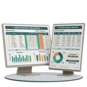 Access detailed reports for attendance, labour activity, payouts, and daily work progress within buildcontrol. Generate structured reports to analyze workforce productivity, payment records, and site performance. With centralized reporting, project managers can quickly review project data and make informed decisions.