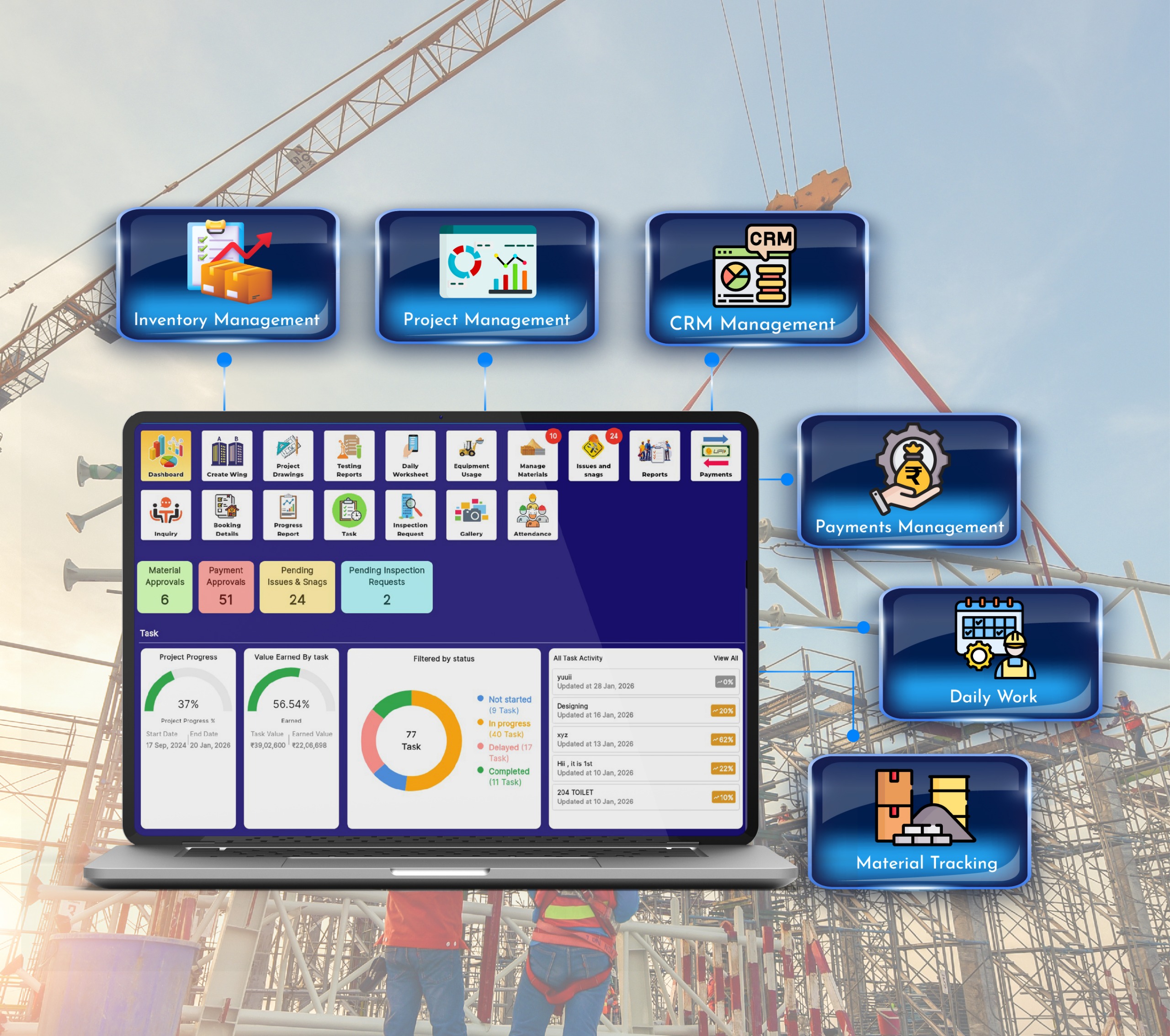 Track the daily ProgressEffortless Task Management for Construction Projects of the work